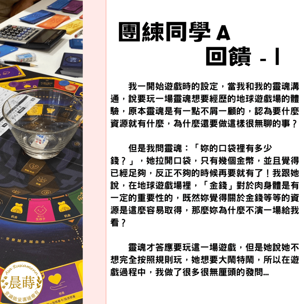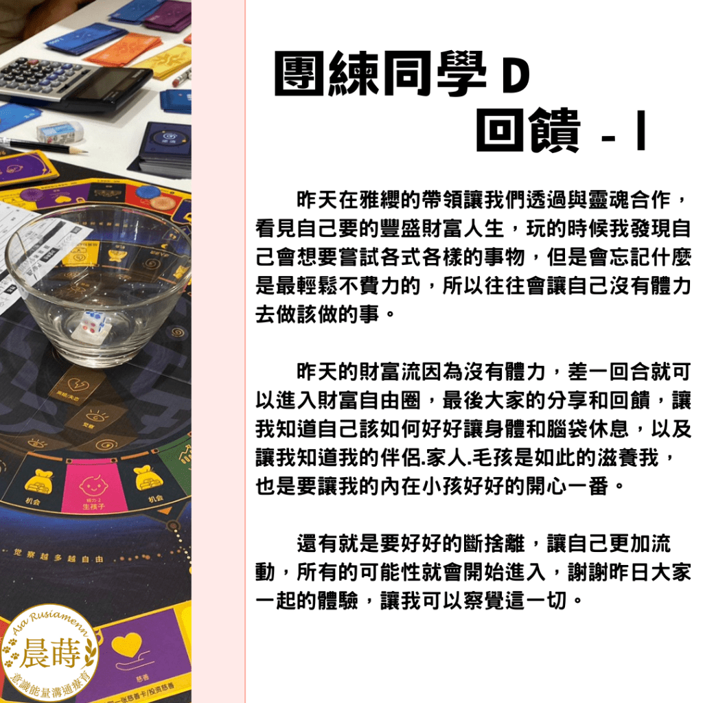 這到底是什麼神奇的『天時地利人和』啊!我們順流而行,團練的主題直接順勢變成:「與靈魂、高我錨定後,請讓我從財富流沙盤體驗靈魂想要體驗的人生」
