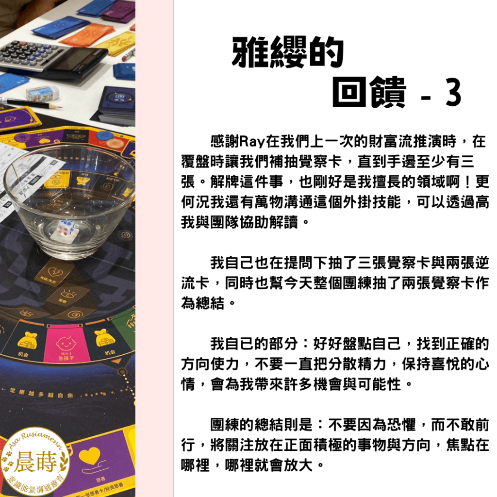 「咦?這個主題很適合用財富流沙盤協助清理欸!」有參與上次財富流推演的朋友靈光一閃。