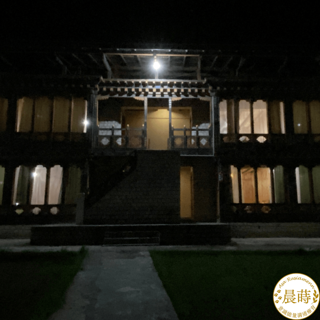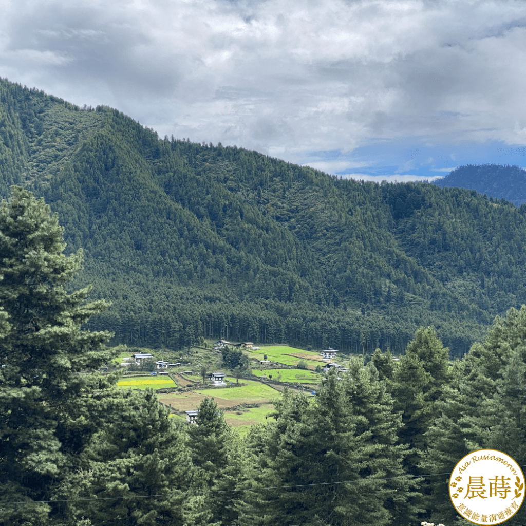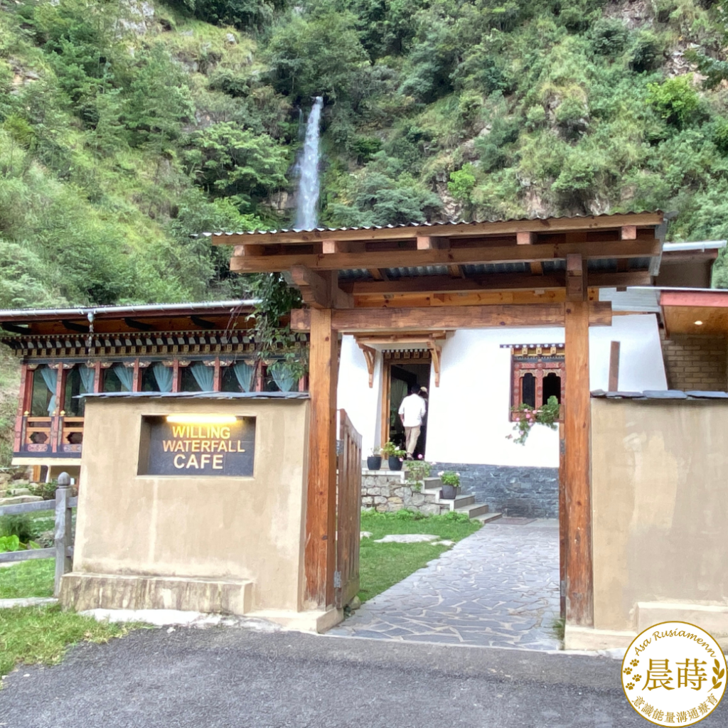 接著我們要做七、八個小時的車,期間會經過中不丹-通薩(Trongsa),最後在布姆唐(Bumthang)入住。中間經過了一個超美的咖啡廳,有個大大的庭院,有許多狗狗,最最讓我驚訝的是,這個庭院中有著溪流,還有一個很美的瀑布在後院。