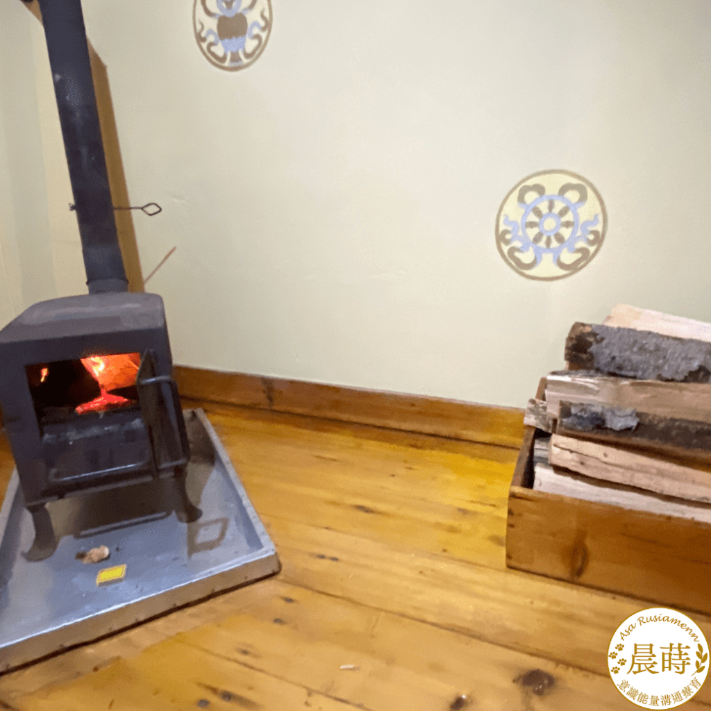 到達住宿飯店的時候,已經滿晚的,大家吃過晚飯,開始攤開行李,到處串門子。我住的是二層樓房中的一樓,算是滿普通的房間?除了我們房間有一套沙發組,超級適合一群人聚會聊天,這時聽說有人的房間有火爐,而且是燒柴火的,還有唐卡在房間裡!立刻衝去參觀一下~但我忘記拍唐卡了,只拍了火爐。