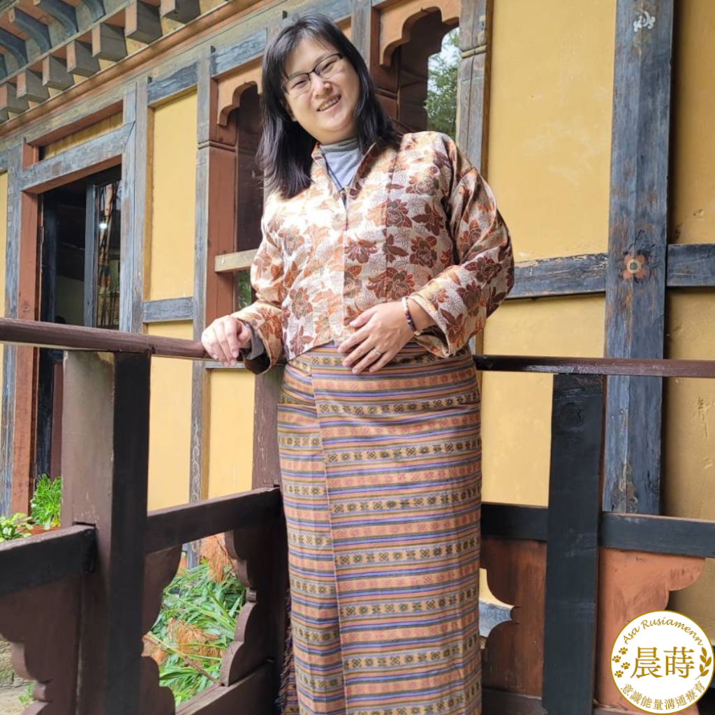 我身上的這套Kira是一套意外的禮物,在出發去不丹前就對傳統服飾非常感興趣,也有在思考要不要買一套呢?我在台灣會有機會穿嗎?結果剛到不丹沒多久,就遇上了這麼一套很適合我的Kira,而且穿起來是非常剛好的,而且感覺其實搭配一般的服裝穿,似乎也不奇怪。